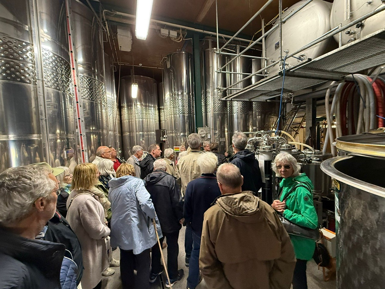Unsere Reisegruppe konnte dann Weine aus dem Jahrgang 2023 verkosten: Müller-Thurgau